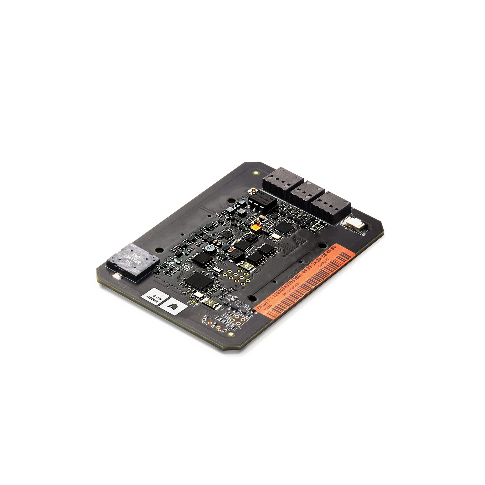 Матовая печатная плата черного цвета с оранжевой наклейкой